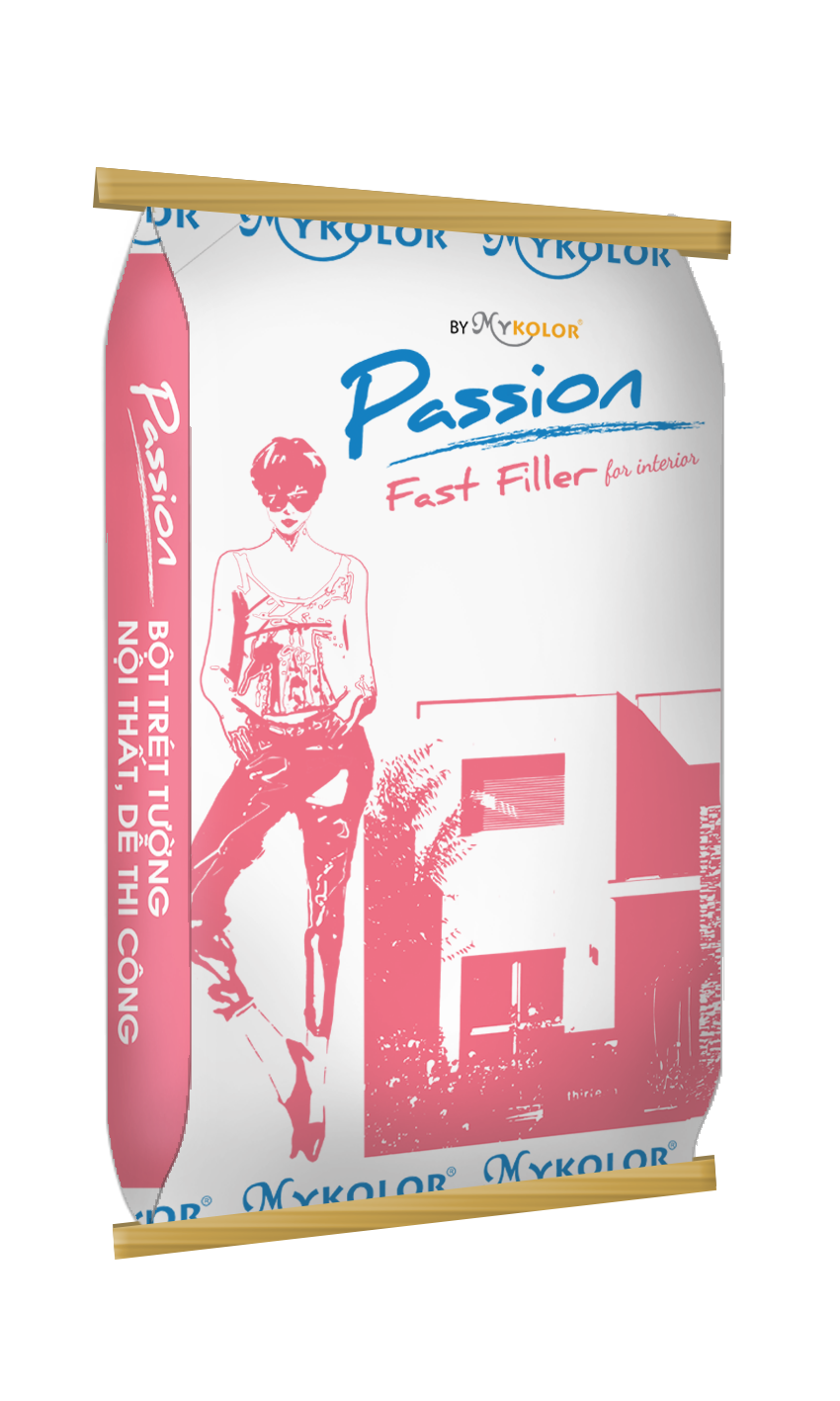 MYKOLOR PASSION FAST FILLER FOR INTERIOR – BỘT TRÉT TƯỜNG NỘI THẤT, DỄ THI CÔNG dùng để lấp các lỗ hổng và làm phẳng các bề mặt hồ vữa hay bê tông trước khi sơn lót hay sơn phủ. Loại này dễ sử dụng, dẻo, mịn, kéo nhẹ tay nên trét được nhiều mét vuông. Tăng tính thẩm mỹ cho lớp sơn hoàn chỉnh. Thích hợp cho các loại sơn nội thất mang nhãn hiệu Mykolor Passion.